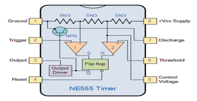 The 555 timer chip is an 8-pin device that can be operated either as a very accurate Monostable, Bistable or Astable Multivibrator to produce a variety of applications such as one-shot or delay timers, pulse generation, LED and lamp flashers, alarms and tone generation, logic clocks, frequency division, power supplies, and converters, etc, a fact any circuit that requires some form of time control.